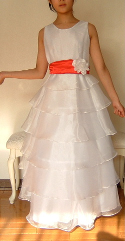 ※背中ファスナー ウエストはリボンで調節