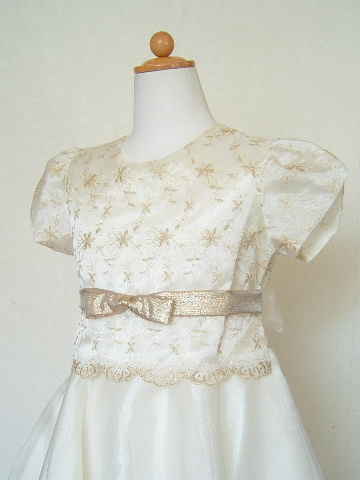 ※上身頃のゴールド刺繍とウエストのゴールドリボンが
