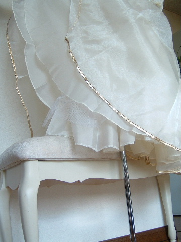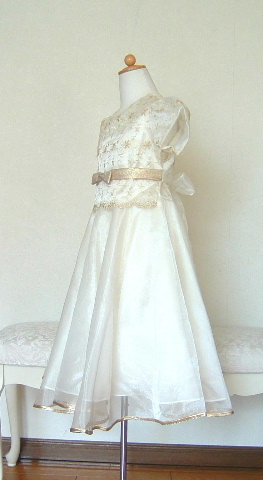 ※アイボリー色のスカート裾には、ゴールドテープで、