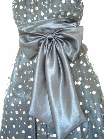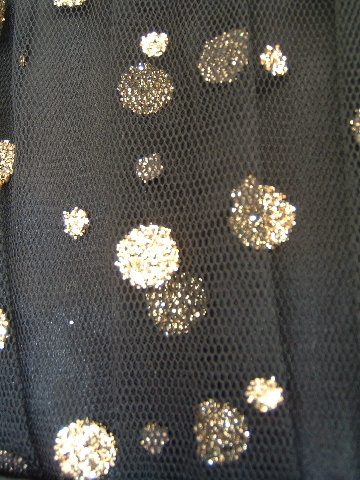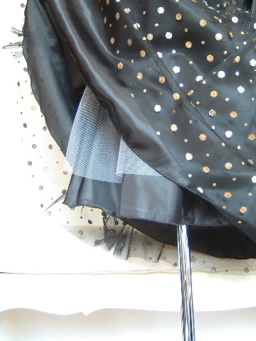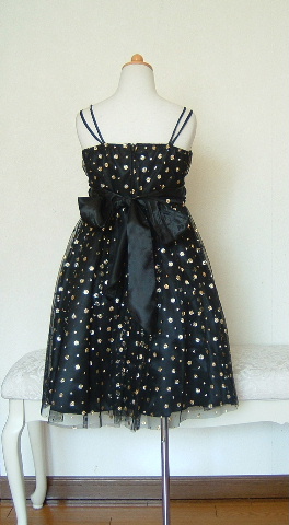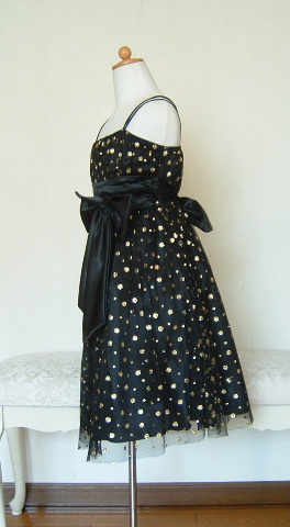 ドレス全体のゴールド水玉は、ラメがたっぷり!