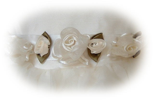 小さなコサージュは、全てがサテン生地リボンに付いてる状態となっております