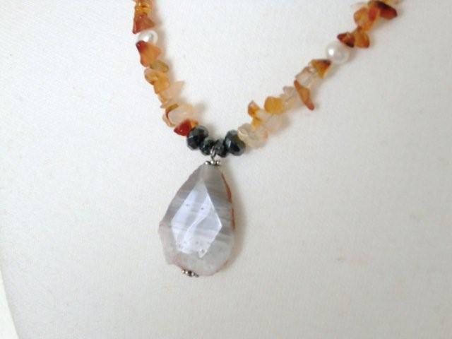 | ※ブルーレースアゲートのラフカットは表面がツルツルとしていながら 天然石の良さを最も引きだしたナチュラルなカットで 個性的な自分だけのネックレスをお探しの方にぴったりのお品です オリジナリティーが一目でわかる存在感抜群のネックレスに仕上げました(^^) |